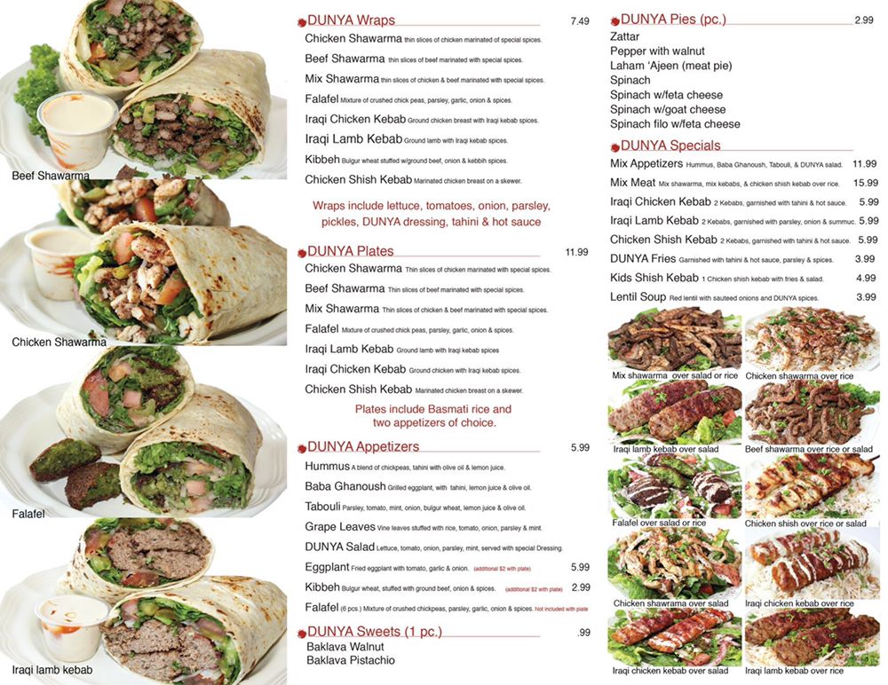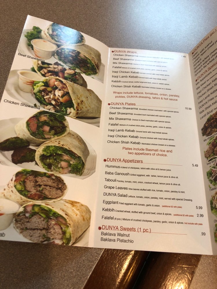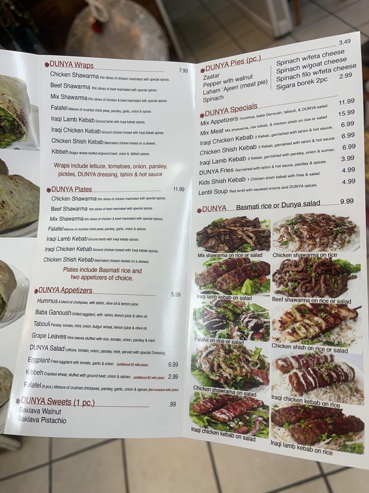 DUNYA fresh halal food offers a variety of flavorful dishes in the Falafel, Turkish, and Middle Eastern categories. Located in Waterbury, CT, this establishment provides options for delivery, takeout, reservations, and catering. With a menu featuring items like Beef Shawarma Plate, Iraqi Chicken Kebab Plate, and Dunya Pies, customers rave about the authentic flavors and fresh ingredients. Reviews highlight favorites such as the chicken shawarma wrap, hummus, and spinach pies. Customers also praise the friendly service and the selection of Middle Eastern groceries available for purchase. Stop by DUNYA for a satisfying meal that will leave you wanting to come back for more.